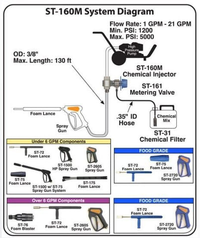 Chemical injector which is placed after the pump and allows to inject the medium-pressure solution